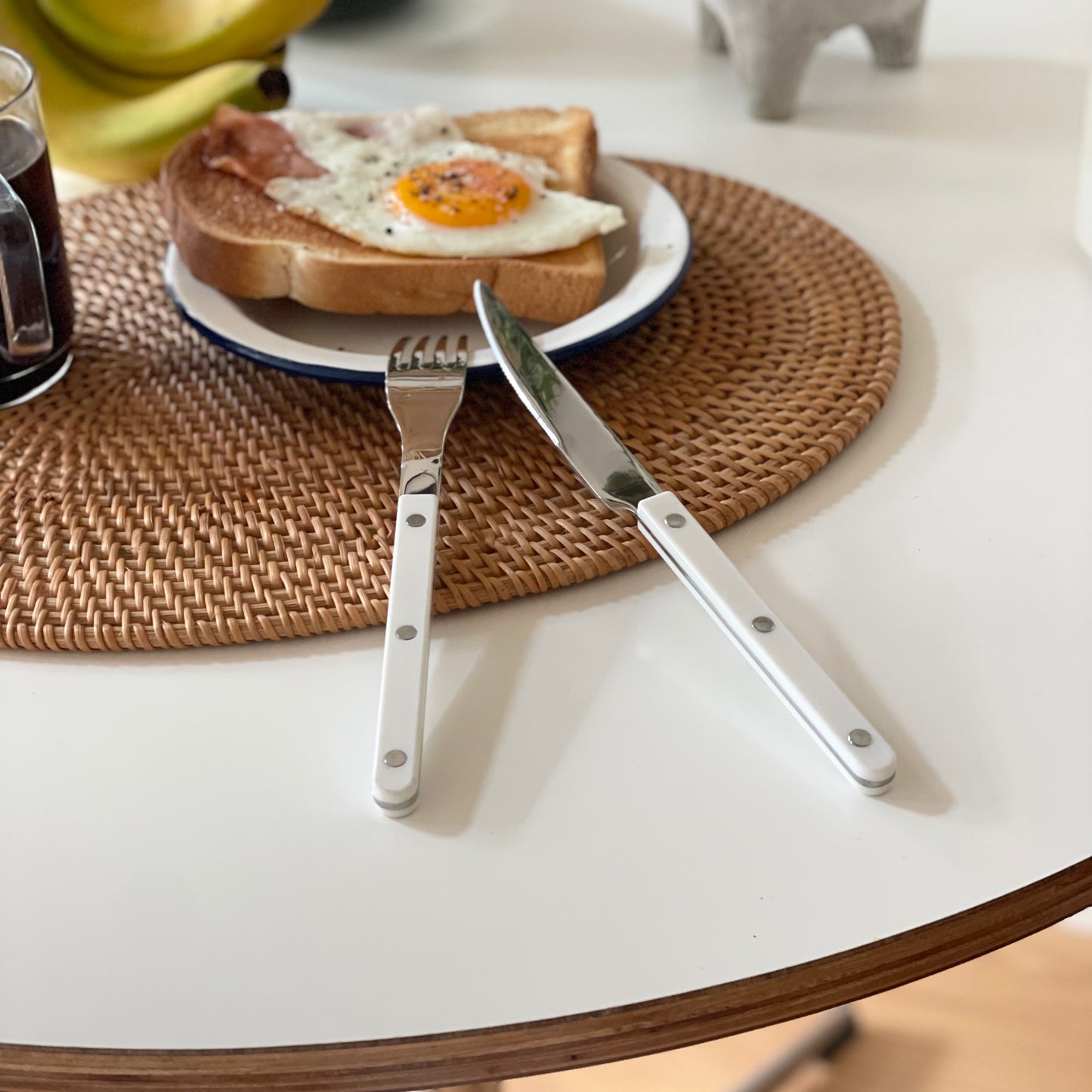 シンプルながらも洗練されたデザインのカトラリーセット。 ホワイトの