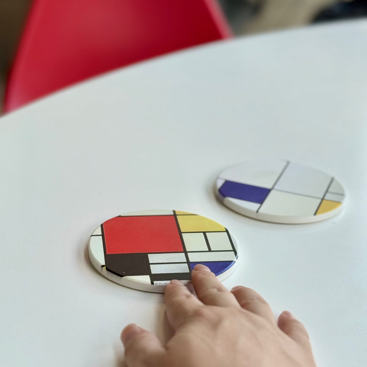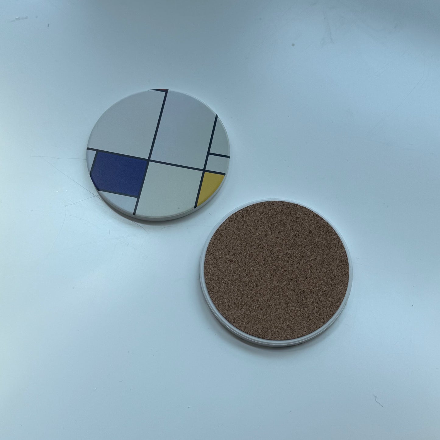 抽象的なラインと配色が印象的な、セラミック製コースター。