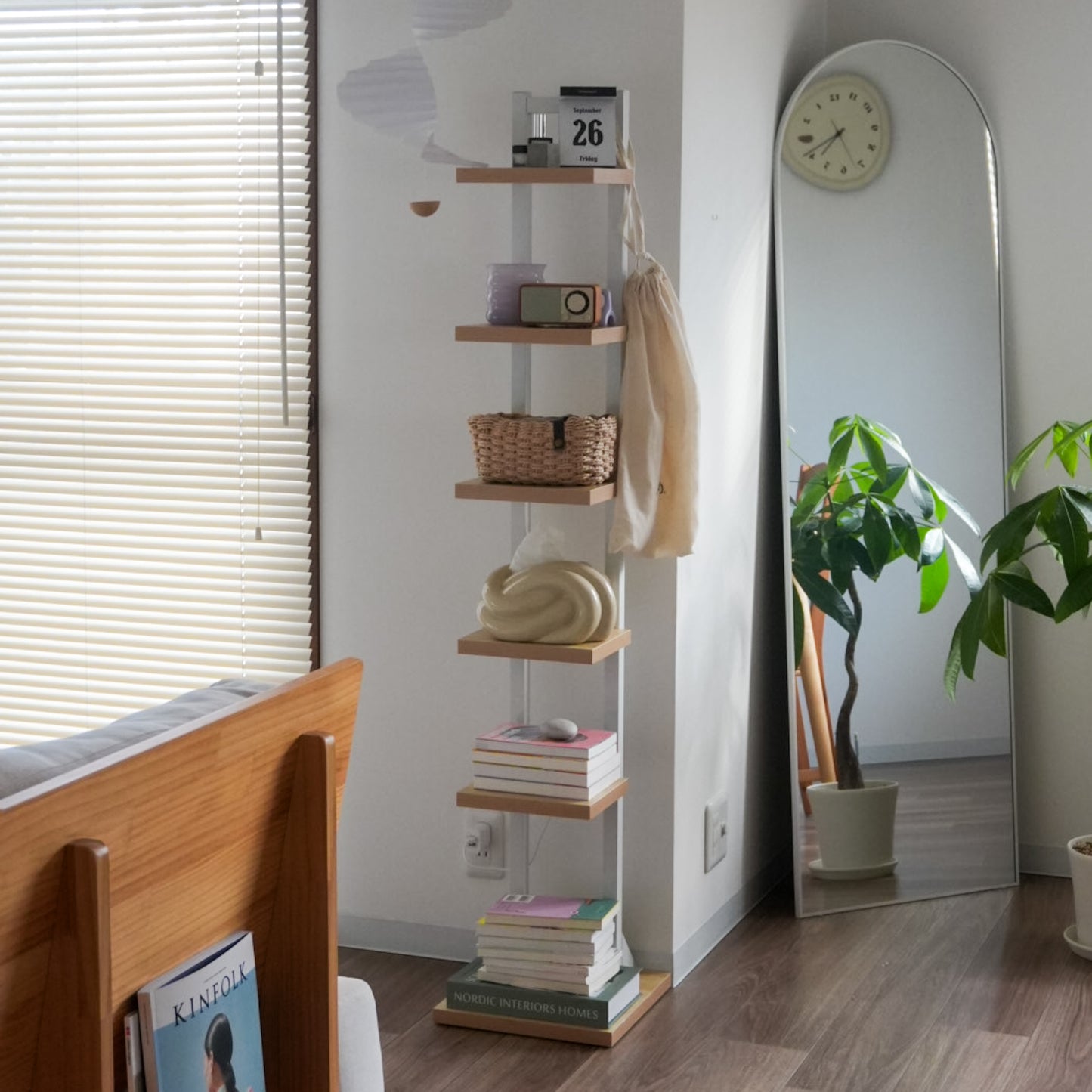 【スリム収納】 タワーシェルフ 360度縦型ラック インテリア家具