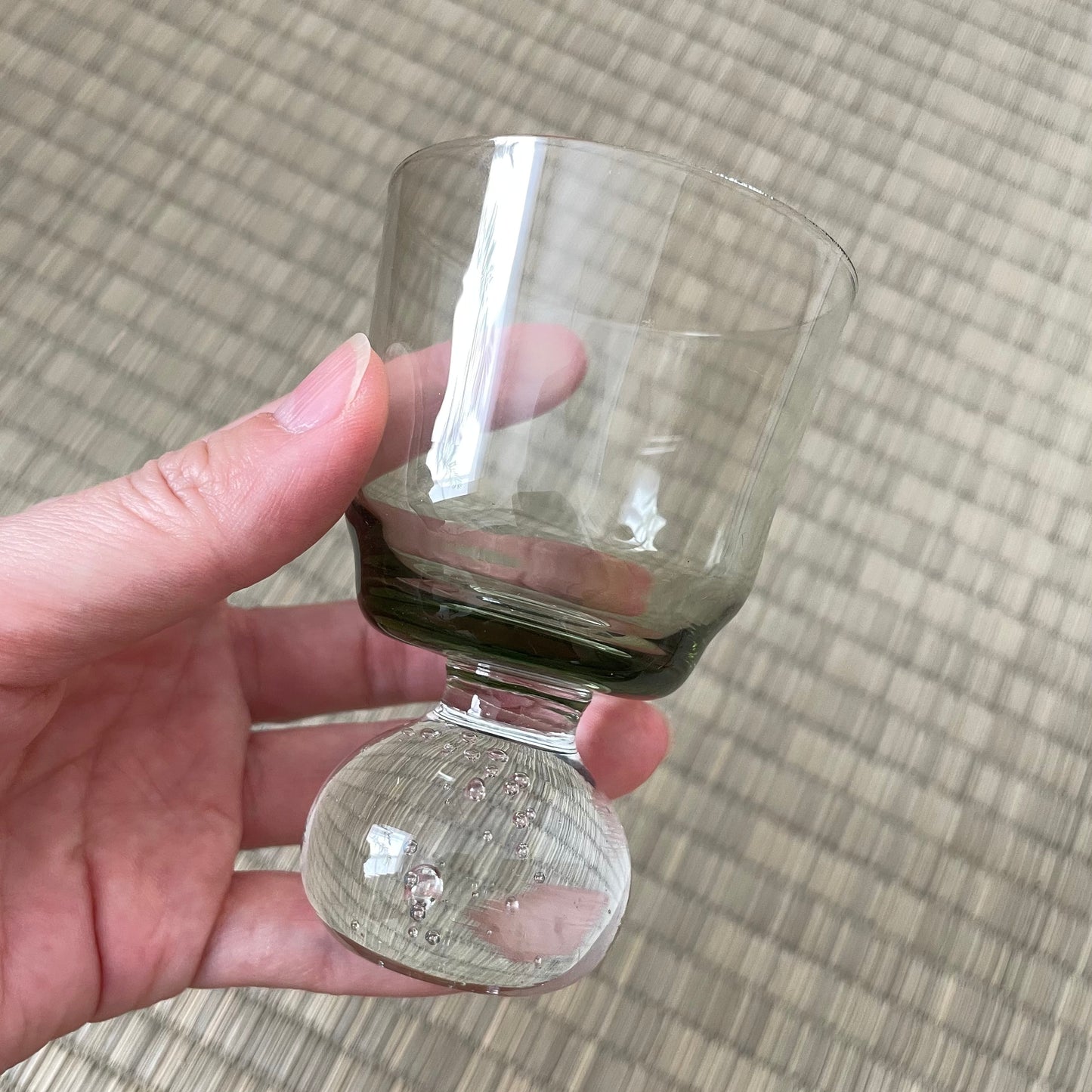 ぽってりとした厚みと、手のひらに収まるやさしいフォルムが魅力のガラスコップ。