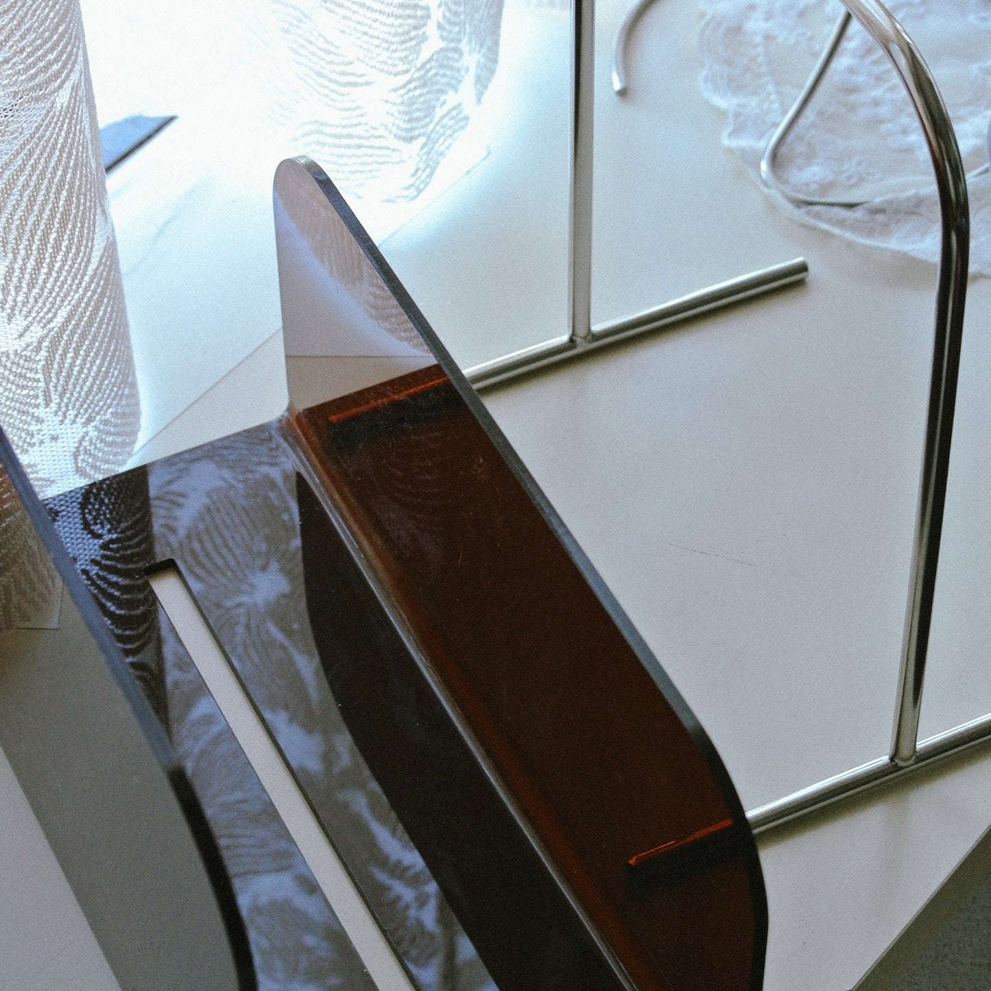 レトロな雰囲気とモダンな素材感が融合したブックレストです。半透明のアクリル素材とスチールハンドルの組み合わせが軽やかで、リビングやベッドサイドに置くだけでスタイリッシュな空間を演出。雑誌やお気に入りの本を立て掛けるのにぴったりで、日常の読書をより快適にサポートしてくれます。使わないときもオブジェのようにインテリアを彩る、機能性とデザイン性を兼ね備えたアイテムです。