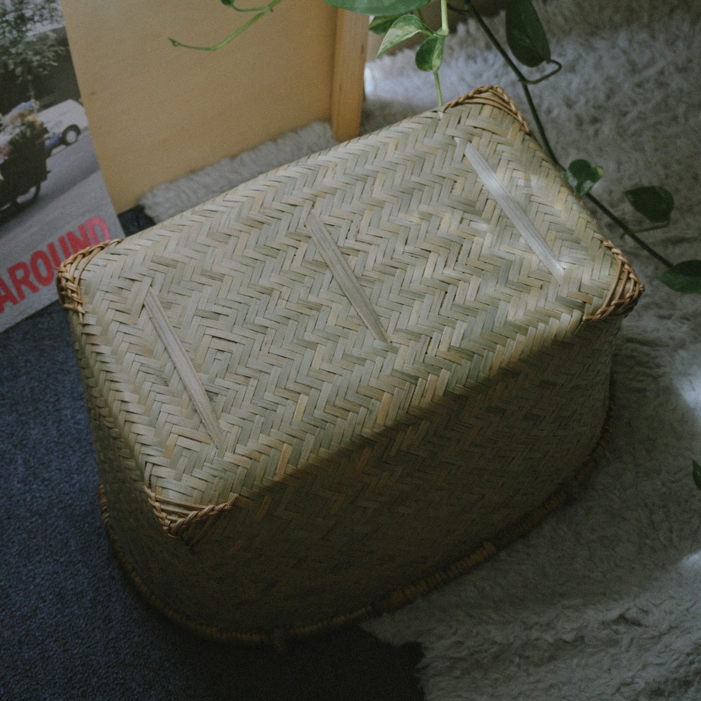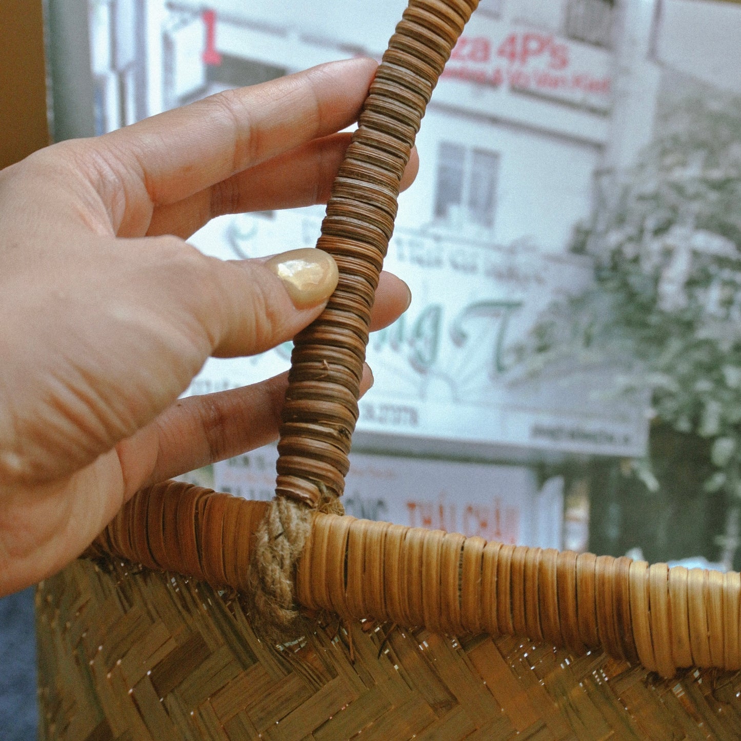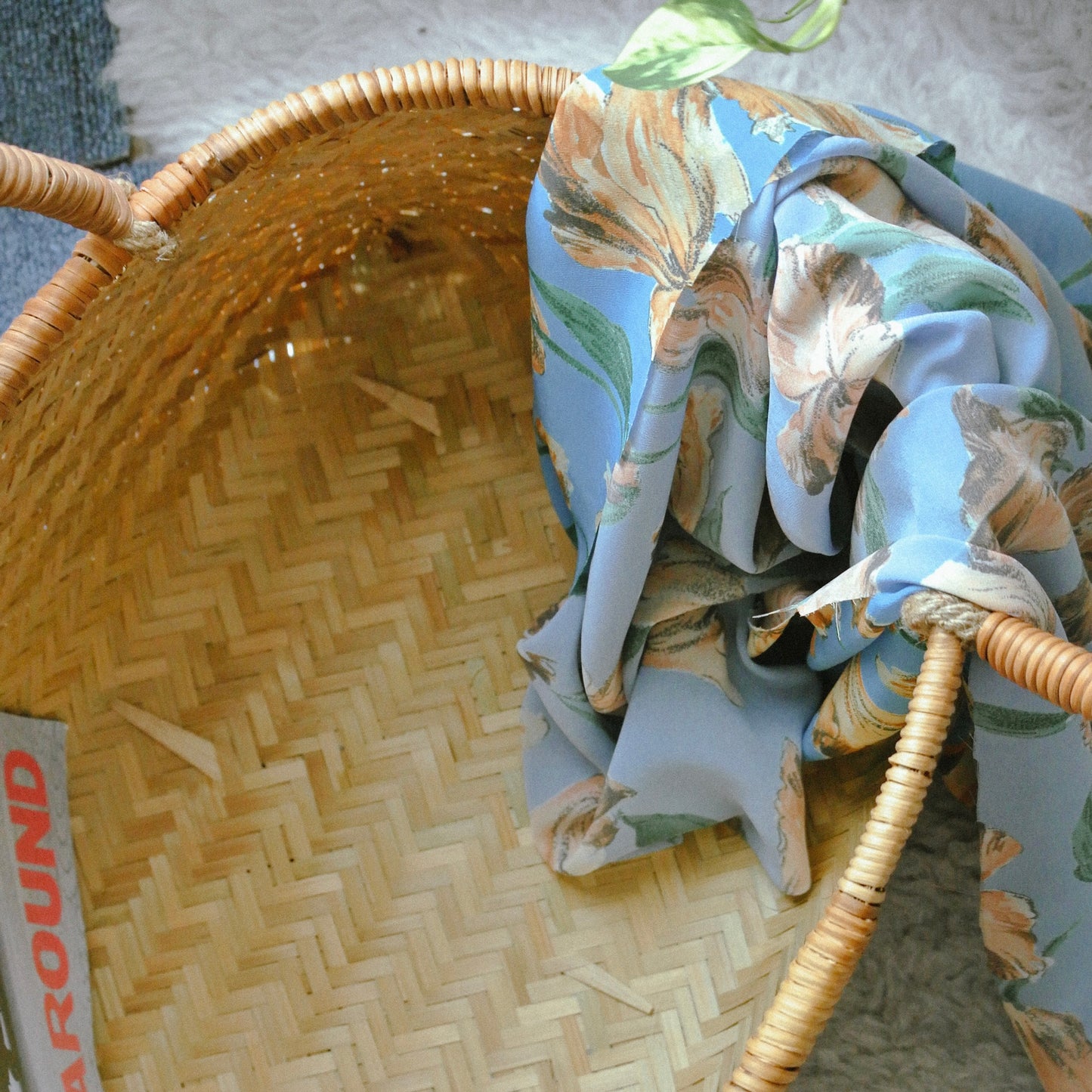 ざっくりと編まれた素材感が涼やかな、ハンドル付きバスケット。