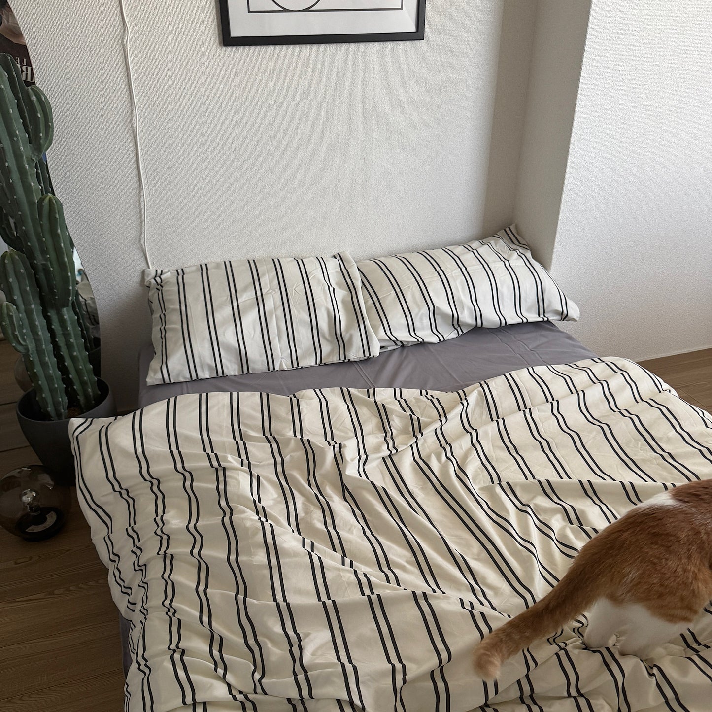 通気性のよい生地で季節を問わず快適に使え、ベッドルーム全体を明るく清潔感のある印象に整えてくれます。