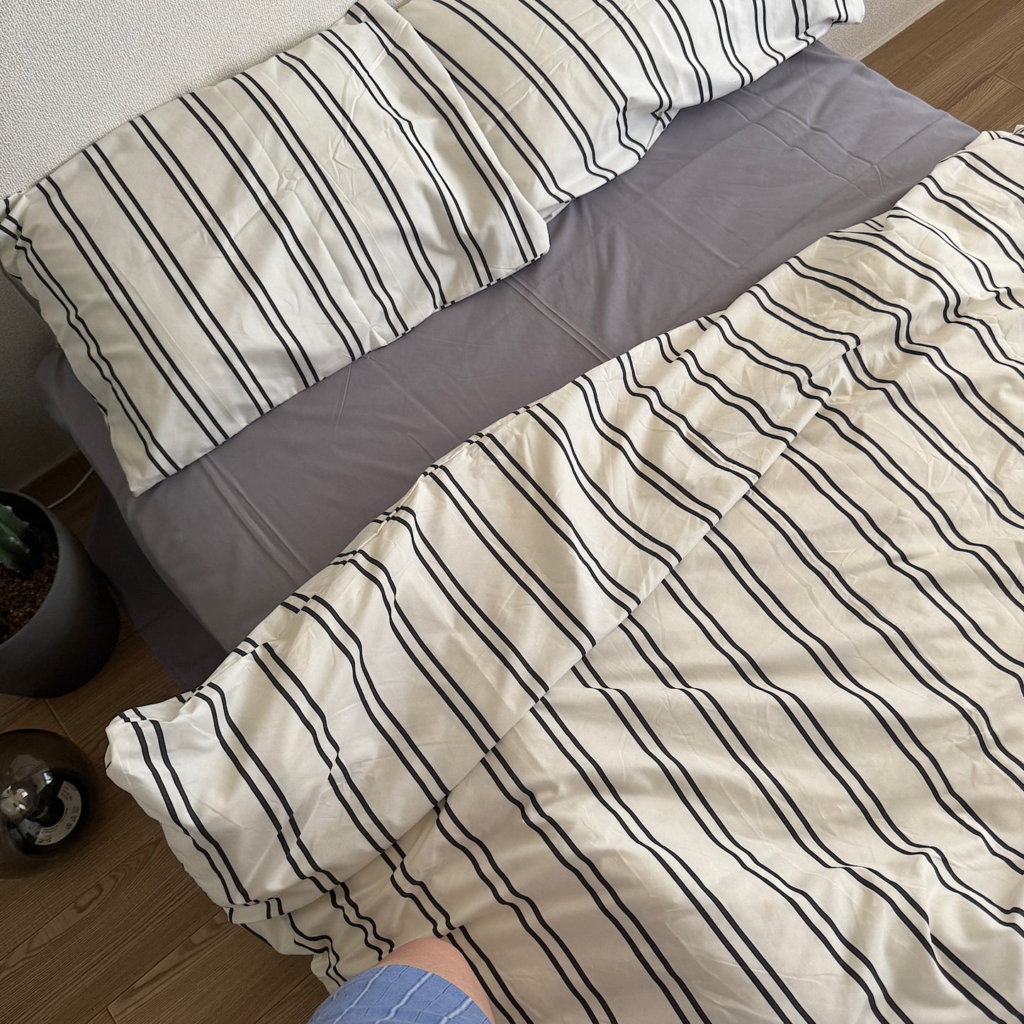 洗練されたストライプ柄が魅力の寝具カバー3点セット。