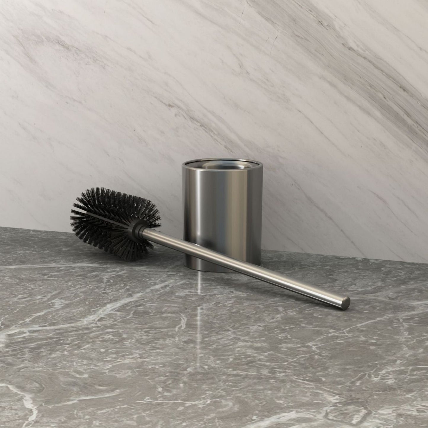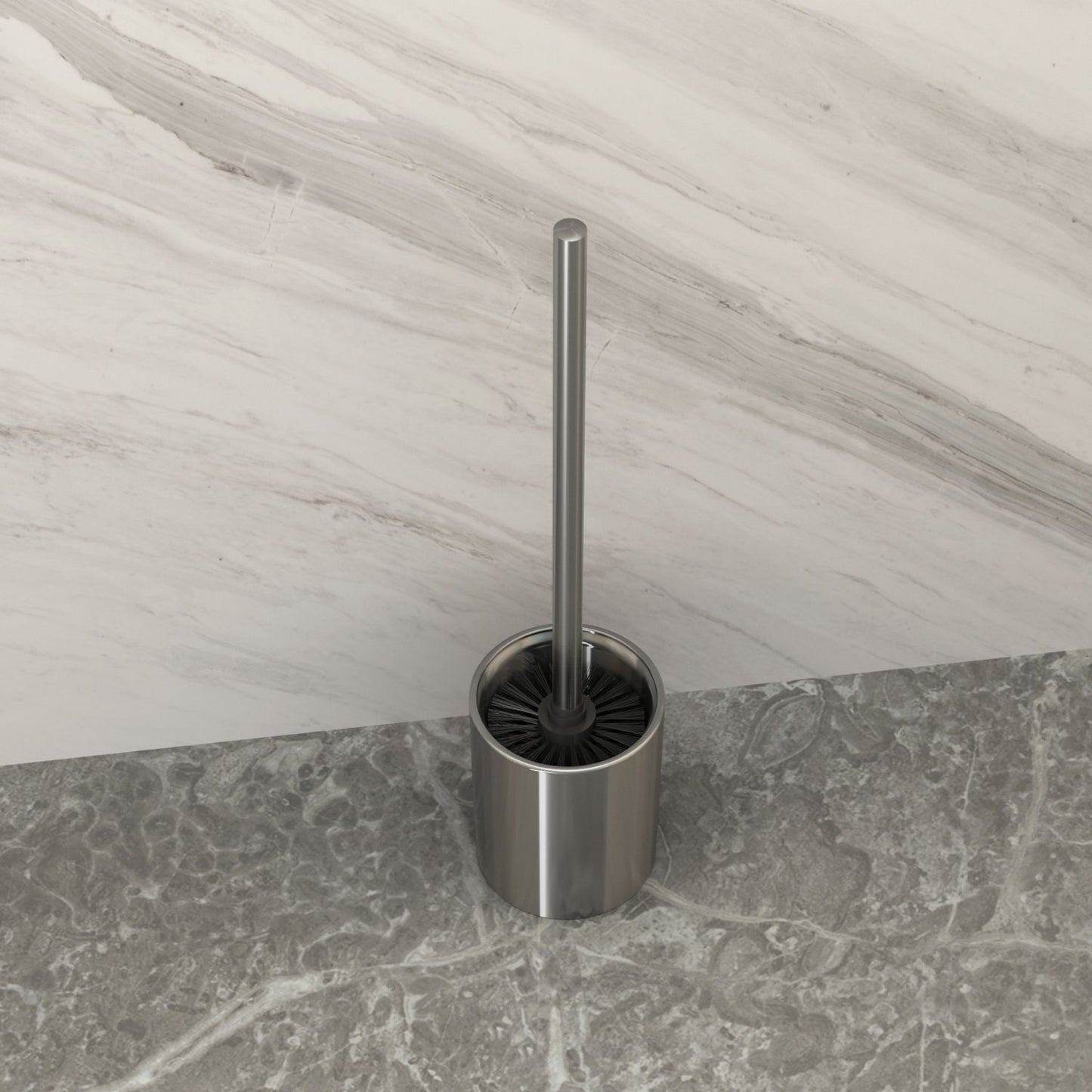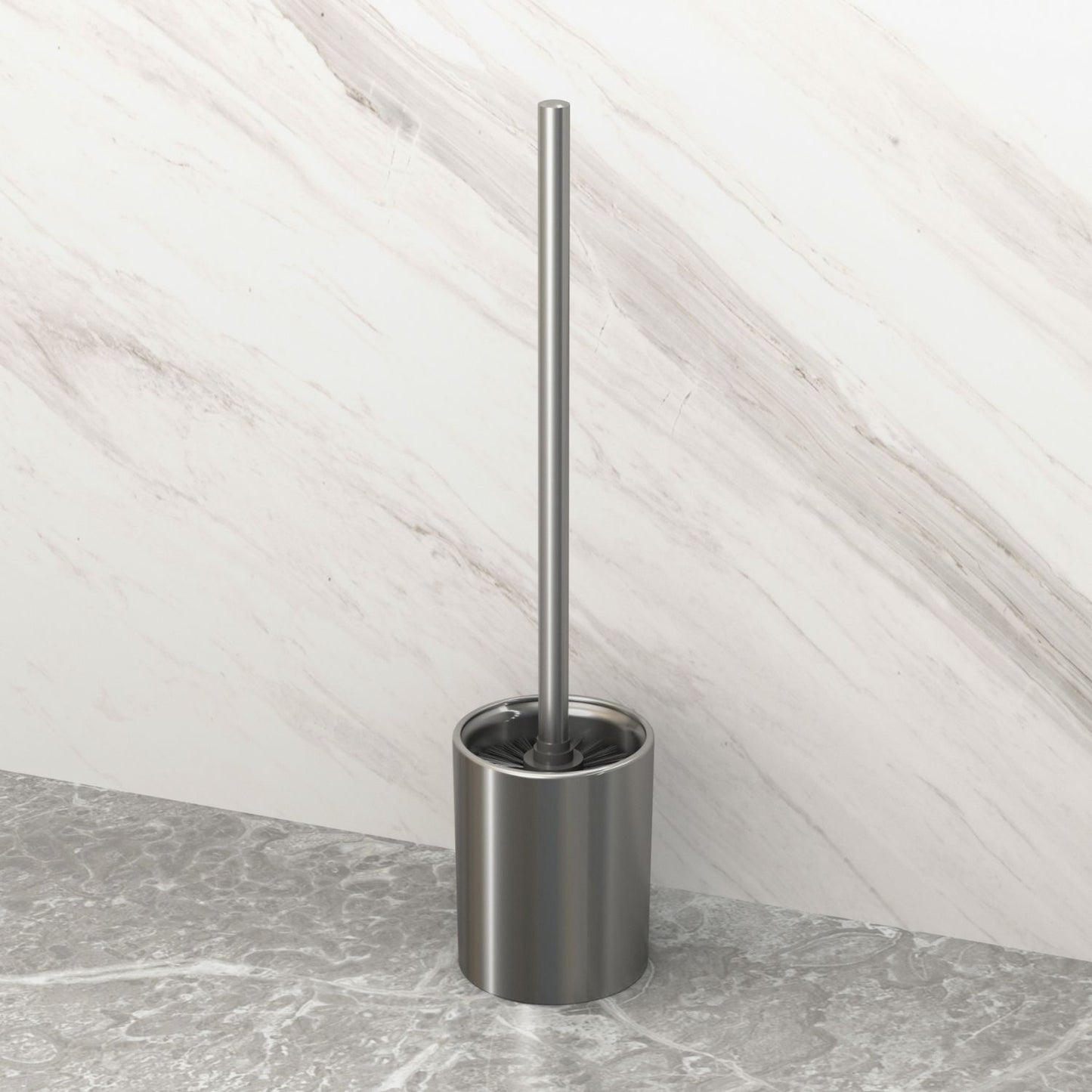 空間に洗練された印象を与える、ミニマルデザインのトイレブラシ&ホルダー。