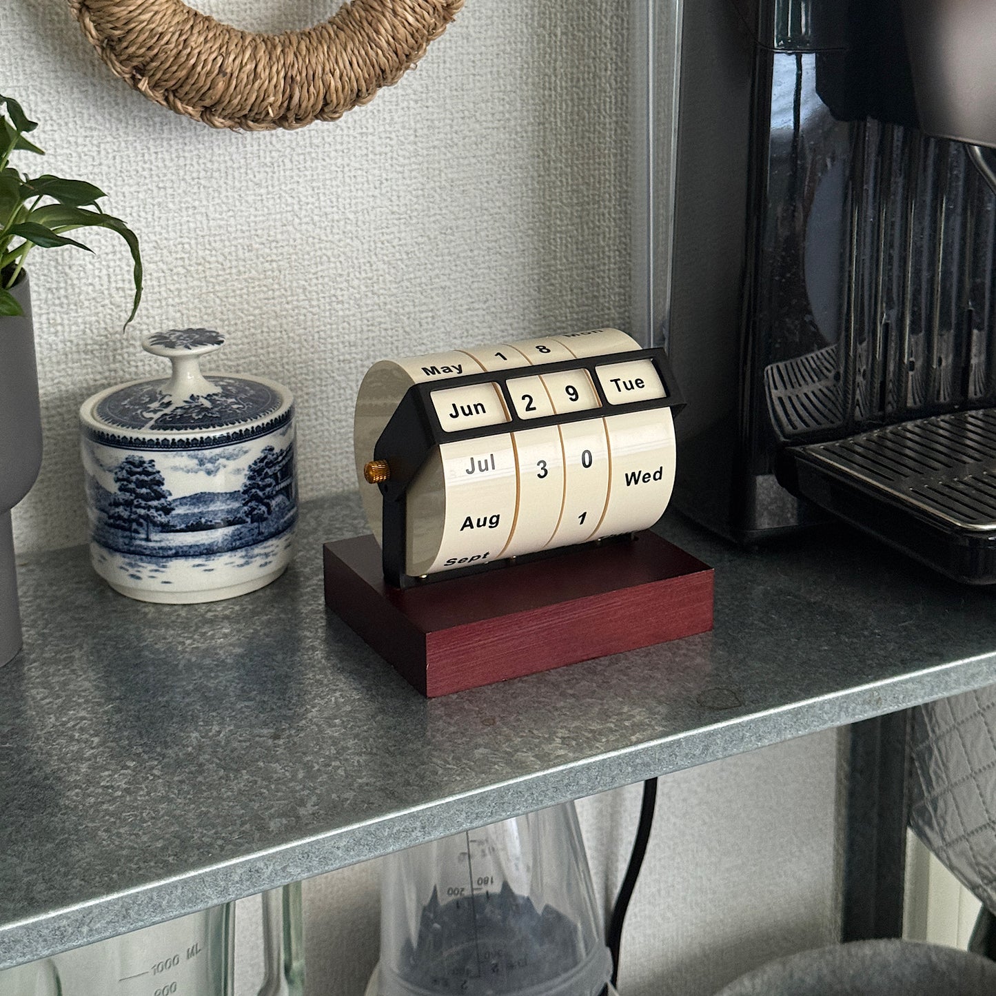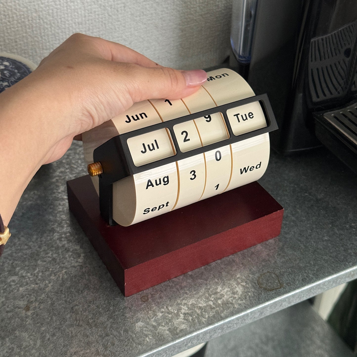 日付・曜日・月を手動でセットできる、ユニークな卓上カレンダー。